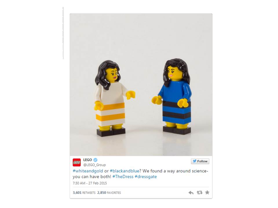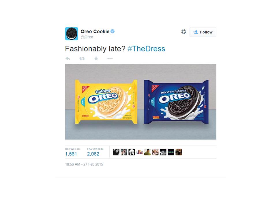 In today’s marketing world if something is trending on Twitter to the degree that #TheDress was any social media expert that’s worth their salt should be tweeting about it. People who saw blue and black couldn’t imagine how anyone could see white and gold, and vice versa. Twitter was in an uproar. Some quick thinking brands were able to capitalize on the situation and get in on the action. While some attempts were a little awkward…